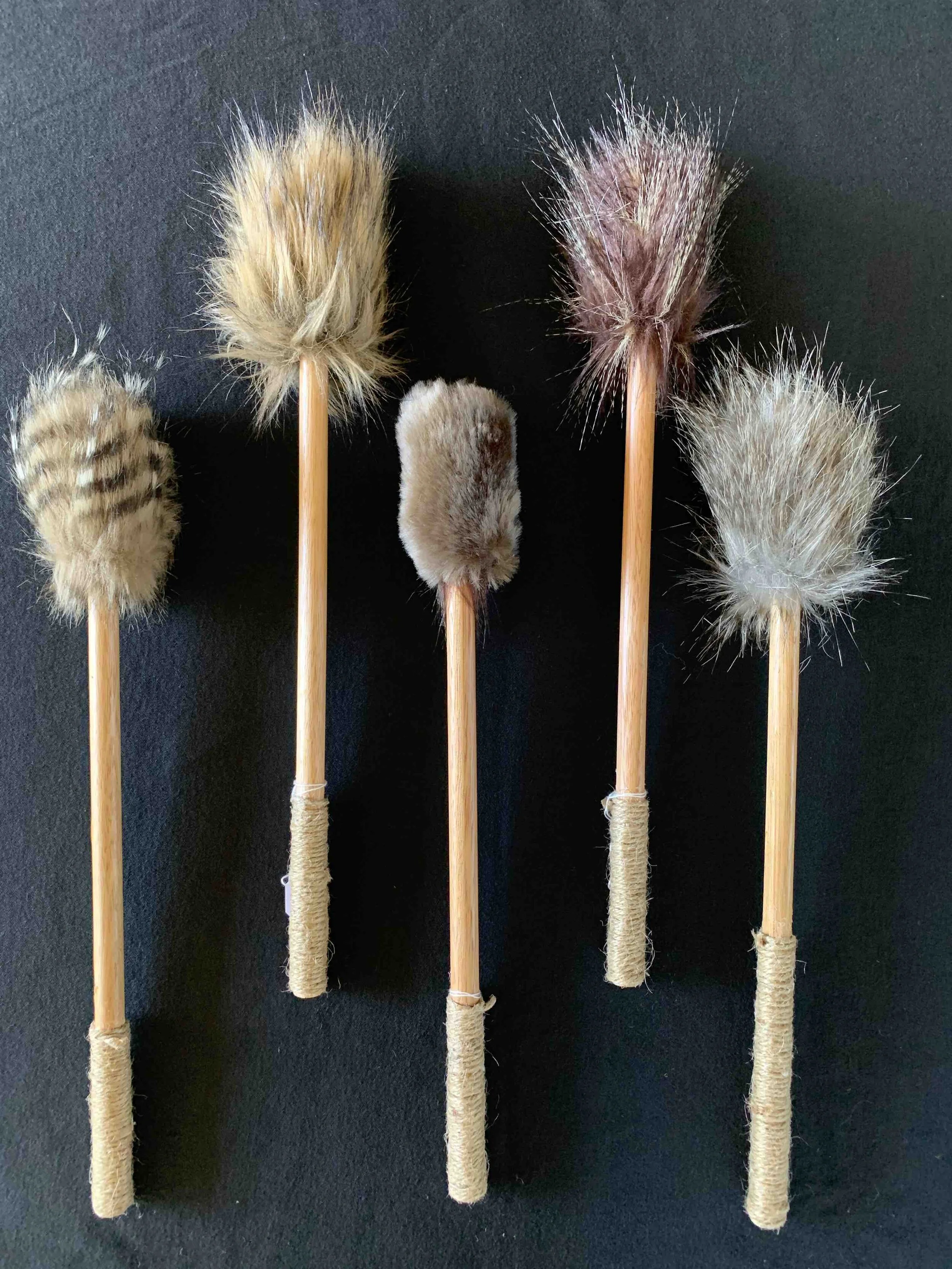 Handcrafted with leather, hide and ethically and locally sourced feathers.